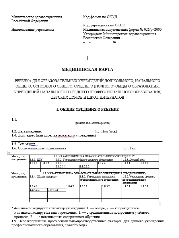 Согласно требованиям Минздрава, бланк медкарты ребенка должен быть оформлен в соответствии со всеми установленными нормами.